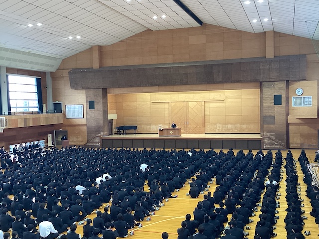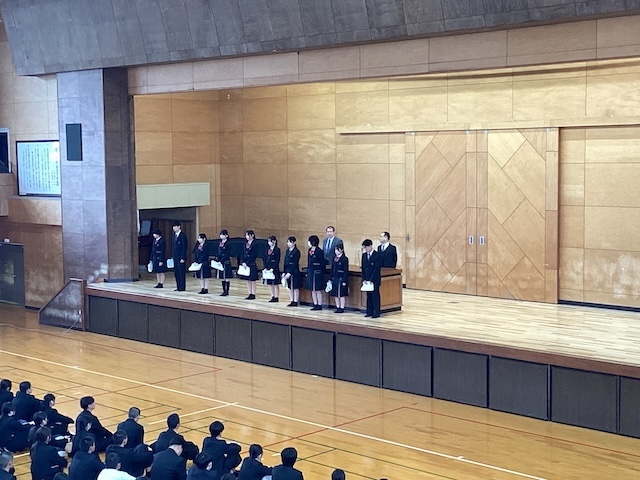 新着情報 2026/01/17お知らせ 3学期始業式 2学期表彰 3学期、いよいよ3年生は卒業までのカウントダウンとなりました。 受験に向けて、年内に進路が決まった生徒たちへの激励が松尾校長先生からお話しされました。 また、2年生、1年生に向けても早目の準備の大切さをお話しされました。 2学期末には、表彰が行われ、多くの部活動の活躍が紹介されました。 前へ 一覧 次へ